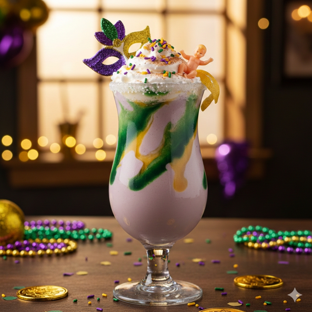 Toast to Mardi Gras with a decadent blend of Frangelico, Brugal rum, seasoned heavy cream, and a whole egg. It’s the ultimate liquid tribute to the classic carnival treat.