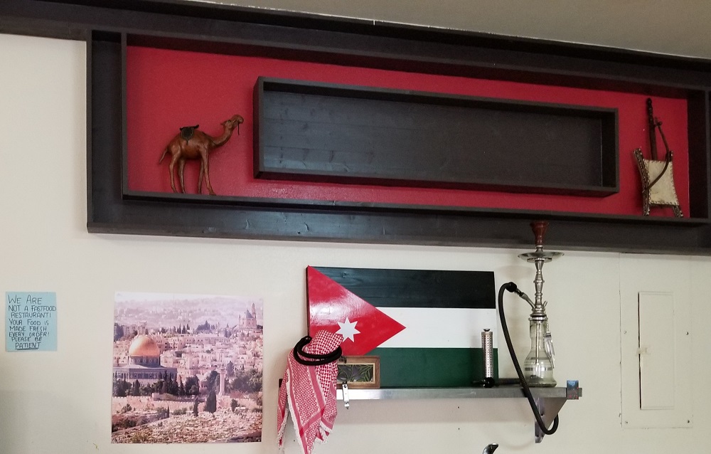 Finding the restaurant was not a problem but parking is limited. They open at 11a.m so of course we were there early to avoid the crowds because I have heard that it can get busy. There are more than enough tables for dining in and the Middle Eastern decorations set the mood for what you are about to eat. The two televisions were on but luckily the volume was not too high or it would have been distracting.