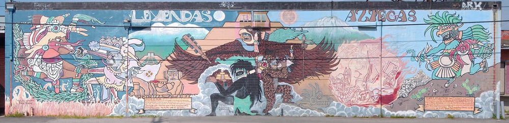 Local arts nonprofit SAY Sí is teaming up with San Anto Cultural Arts and community volunteers to restore the “Leyendas Aztecas” mural on San Antonio’s Westside. Located directly across from SAY Sí’s new campus at 1310 S. Brazos, San Anto Cultural Arts artists, a staple arts organization of the Westside that has historically created San Antonio’s murals that vibrantly tell the story of the community, created the mural. (SAY Sí, 2021)