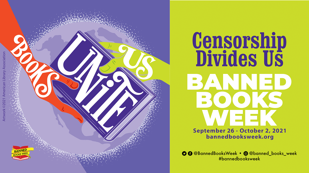 Today marks the beginning of Banned Books Week, which this year takes place from Sunday September 26 through Saturday October 2, 2021. Banned Books Week is an annual event celebrating the freedom to read and was launched in 1982 in response to a sudden rise in the number of challenges to books in schools, bookstores, and libraries. It highlights the value of free and open access to information and brings the book community in their shared support of the freedom to seek and express ideas, even those that are considered unorthodox or unpopular. (Banned Books Week, 2021)