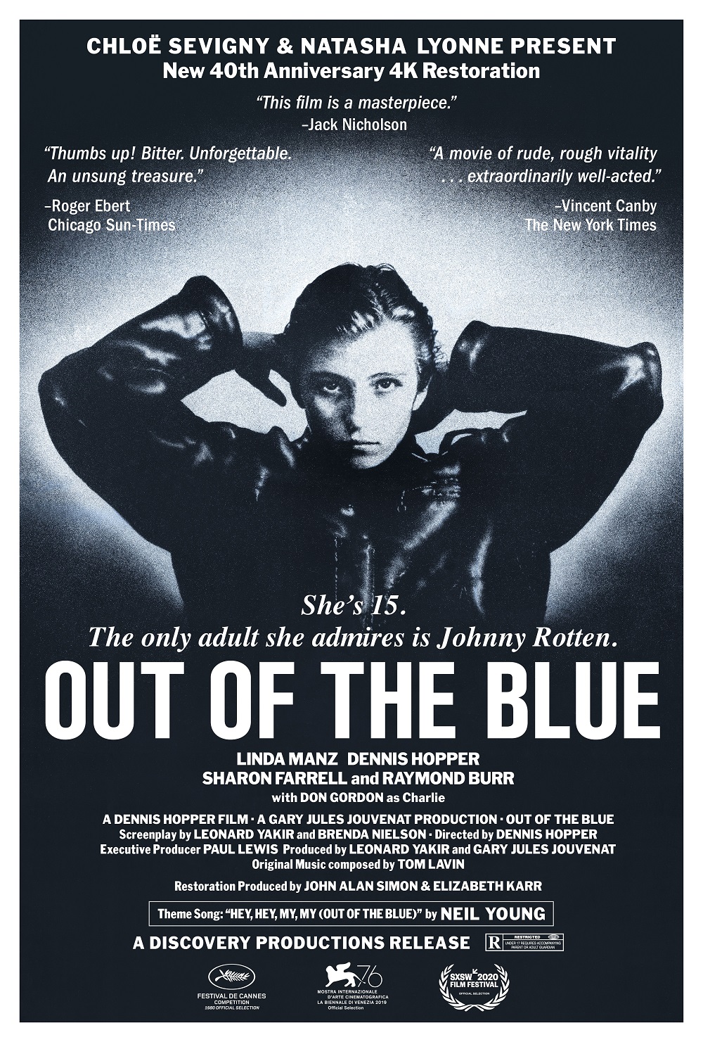 Despite critical acclaim at its original Cannes premiere in 1980, Out of the Blue went unreleased because it was considered too bleak for U.S. audiences. John Alan Simon, then a film critic/journalist, rescued the film from the shelf, secured distribution rights and took it on the road with Dennis Hopper back in 1982 to art house theaters across the U.S. including a 17-week record-breaking run at the Coolidge Corner Cinema in Boston and then NYC and Los Angeles theatrical releases.
