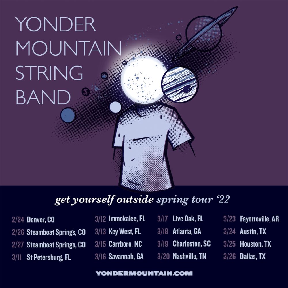 Catch Yonder Mountain String Band On Tour: 2/24 – Denver, CO – Meow Wolf Convergence Station 2/26 – Steamboat, CO – Winter Wondergrass 2/27 – Steamboat, CO – Winter Wondergrass 3/11 – St. Petersburg, FL – Jannus Live 3/12 – Immokalee, FL – Southland Bluegrass and Wilderness Festival 3/13 – Key West, FL – Parade Grounds at Fort East Martello 3/15 – Carrboro, NC – Cat’s Cradle 3/16 – Savannah, GA – Victory North 3/17 – Live Oak, FL – Suwannee Spring Reunion 3/18 – Atlanta, GA – Variety Playhouse 3/19 – Charleston, SC – Charleston Bluegrass Festival 3/20 – Nashville, TN – Brooklyn Bowl 3/23 – Fayetteville, AR – George’s Majestic Lounge 3/24 – Austin, TX – Scoot Inn 3/25 – Houston, TX – Warehouse Live 3/26 – Dallas, TX – The Studio at the Factory