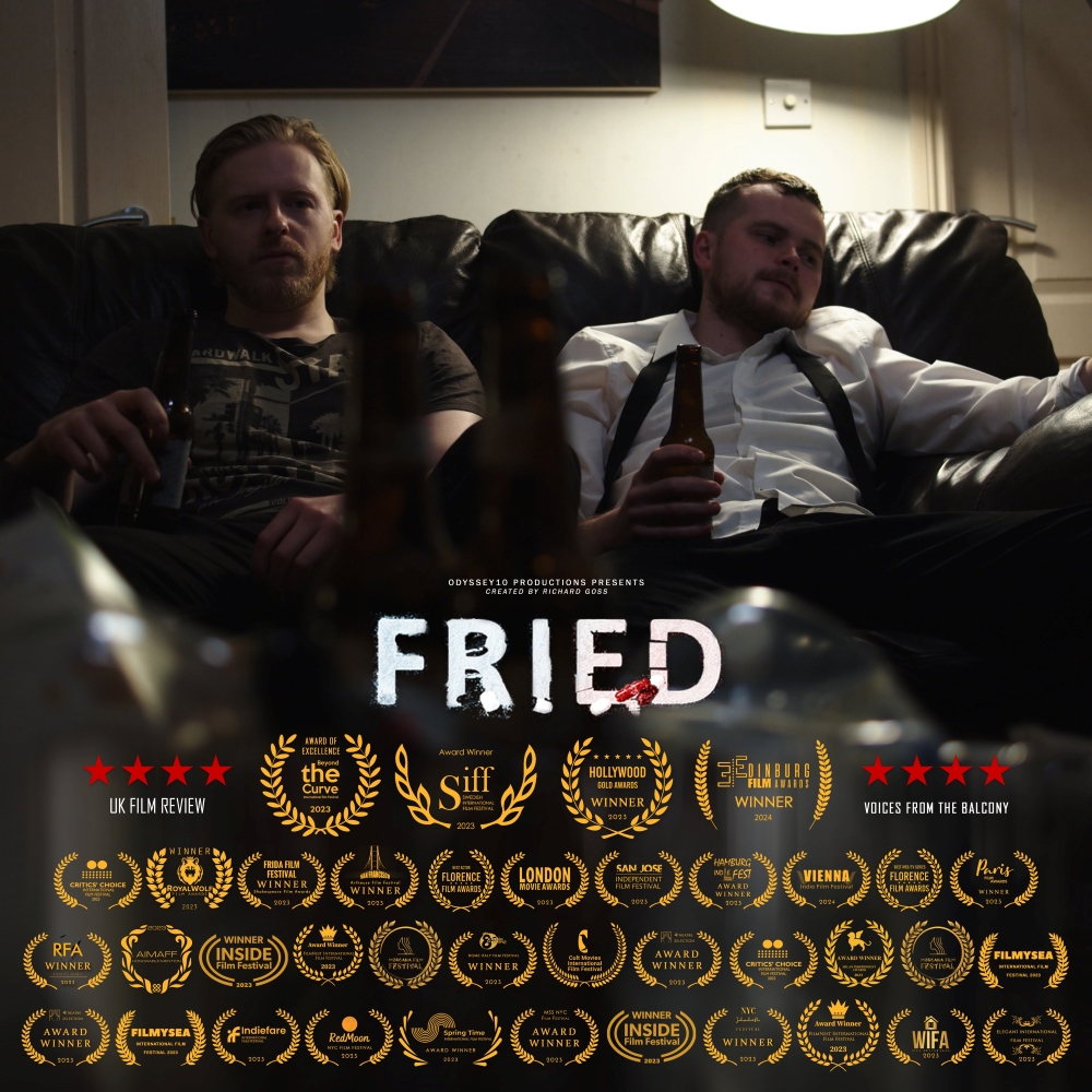 FRIED is a nihilistic psychological thriller with dark comedic elements. A short series set in London, it explores themes of poverty, social class, mental illness, and addiction. (Richard Goss, 2024)