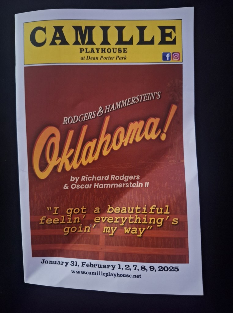 Now playing at the Camille Playhouse in Brownsville is “Oklahoma!” – a timeless American musical that combines a compelling story with vibrant music, offering a celebration of frontier life and the complexities of love and community. It features a score by Rodgers and Hammerstein, including unforgettable songs like “Oh, What a Beautiful Mornin'” and “People Will Say We’re in Love.” Set in the early 1900s, it follows the lives of two rival groups—farmers and cowboys—in the Oklahoma Territory, with romance blossoming between the spirited Laurey Williams and the charming Curly McLain.