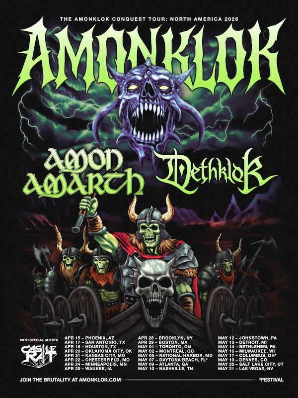 Swedish metal titans Amon Amarth is joining forces with Dethklok for The Amonklok Conquest, an extensive co-headlining tour crossing North America in Spring 2026. With special guests Castle Rat, the tour promises a night of pure theater and over-the-top heavy metal entertainment. (another side, 2026)