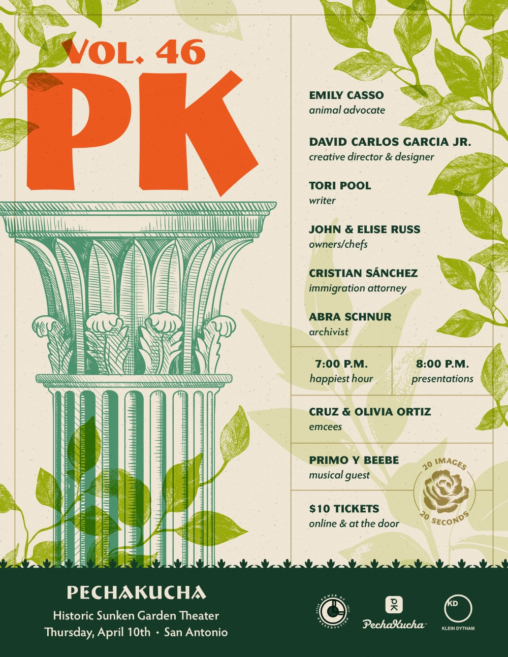 This edition of PechaKucha San Antonio will spotlight seven inspiring local voices, each sharing their passions through the signature 20×20 format — 20 images, 20 seconds each.